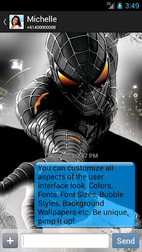 Frustrated with the built-in Messaging app? Wish it was FASTER with lots more PERSONALIZATION options? Then chompSMS is for you, with lots of extra features like Quick Reply, Quick Compose, Schedule Future Messages, Passcode Lock, Privacy, Emoji Icons, Pre-Defined Text Snippets, Signatures, heaps of customization options (notifications, ringtones, colors, fonts, wallpapers), Blacklisting and much more!